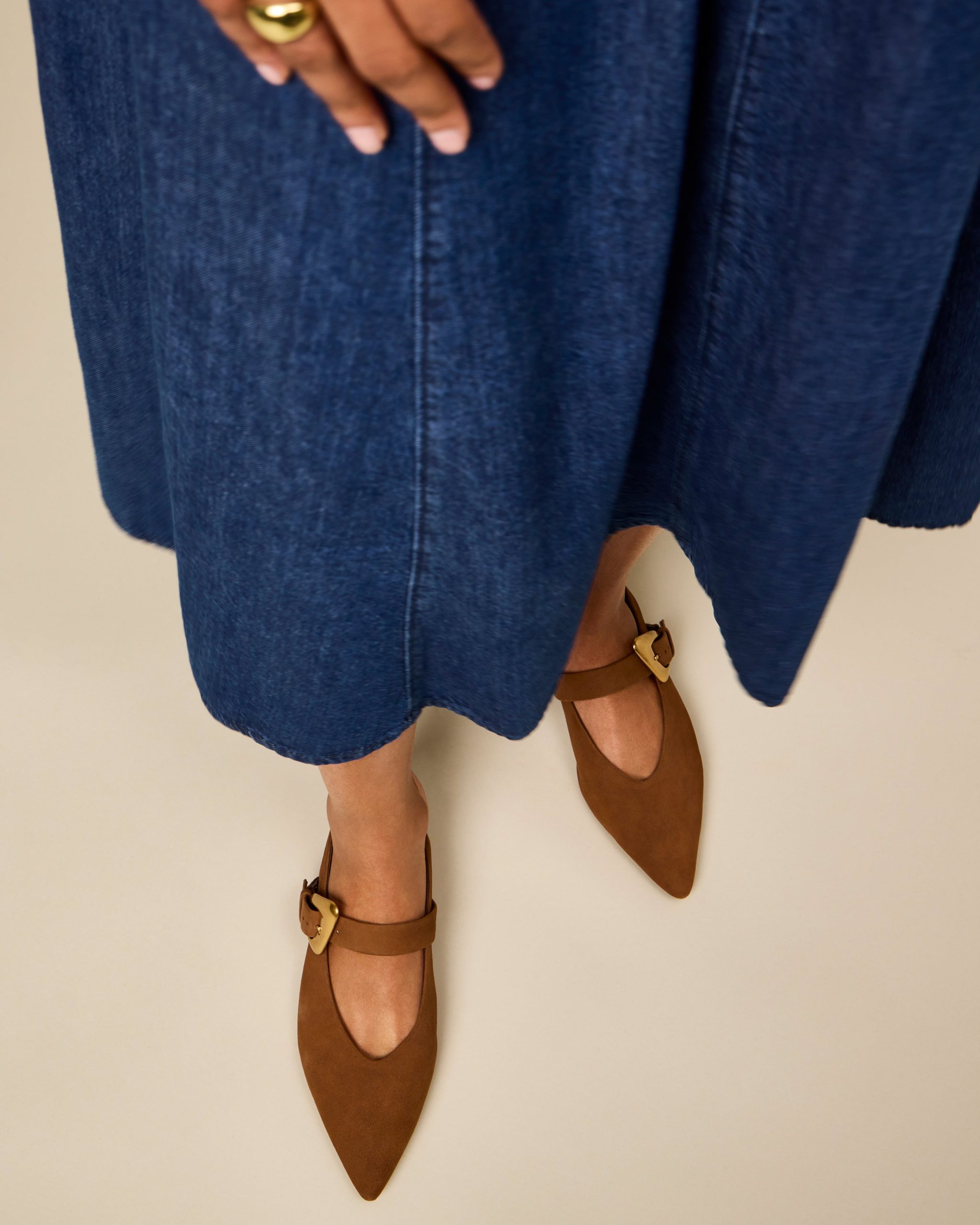 The Amoret mule brings modern polish to a classic silhouette with its pointed toe and sculptural buckle detail. Effortless yet refined. it’s a versatile style that transitions seamlessly from weekday chic to weekend ease.