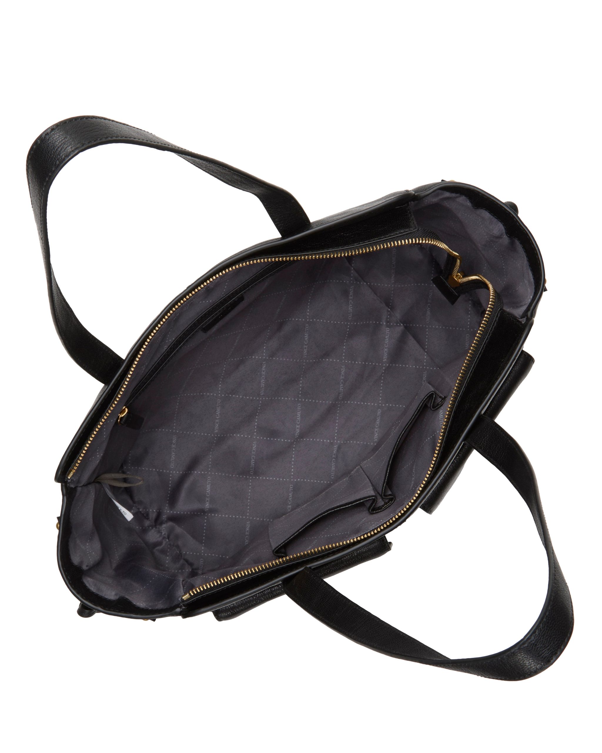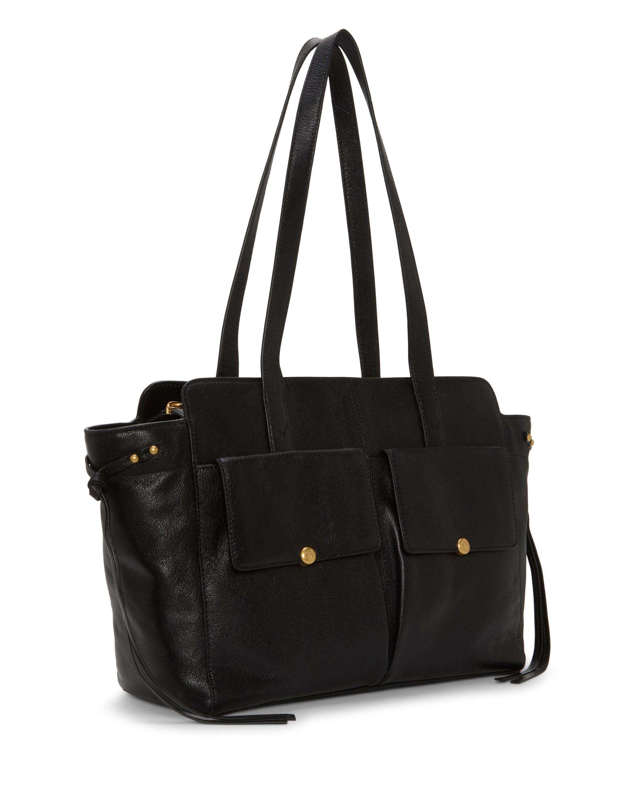 The Carly Tote from Vince Camuto is an instant classic. The exterior has 4 slip pockets and 2 front mobile pockets. The interior features 1 more zipper pocket and 2 slip pockets.