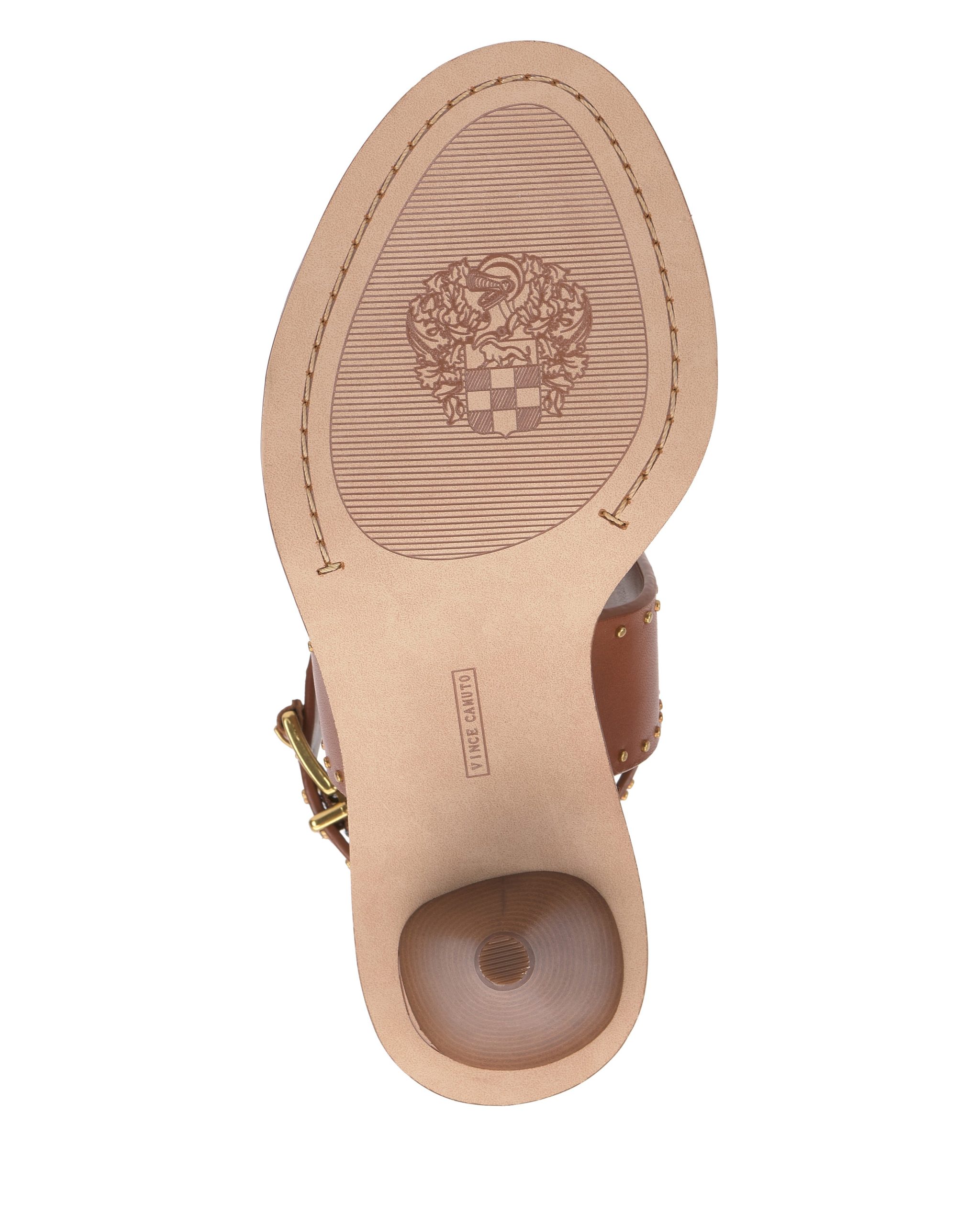 Upgrade warm weather looks with edgy sophistication with the Faunie sandal. Microstuds embellish the trim of the thick t-strap while the cone-shaped heel brings a modern finish.