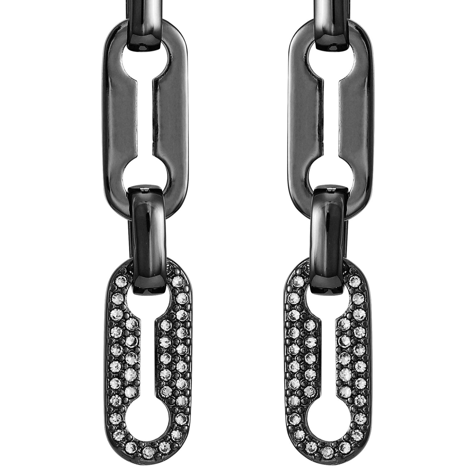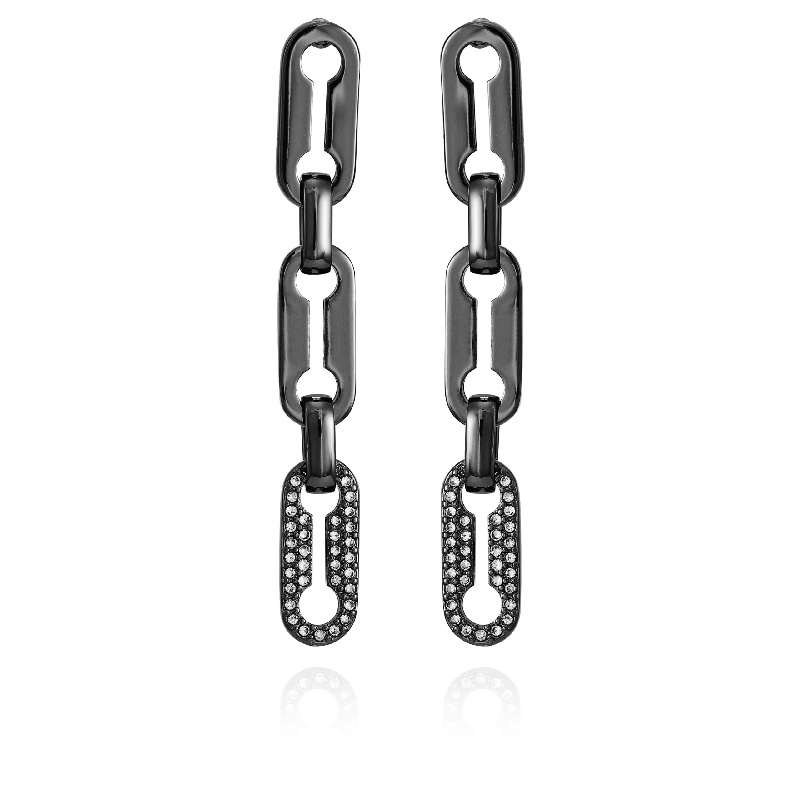 These earrings feature a captivating dangle drop design with hematite-tone link accents. The dark and bold hematite-tone finish adds a touch of modernity and sophistication to your look.