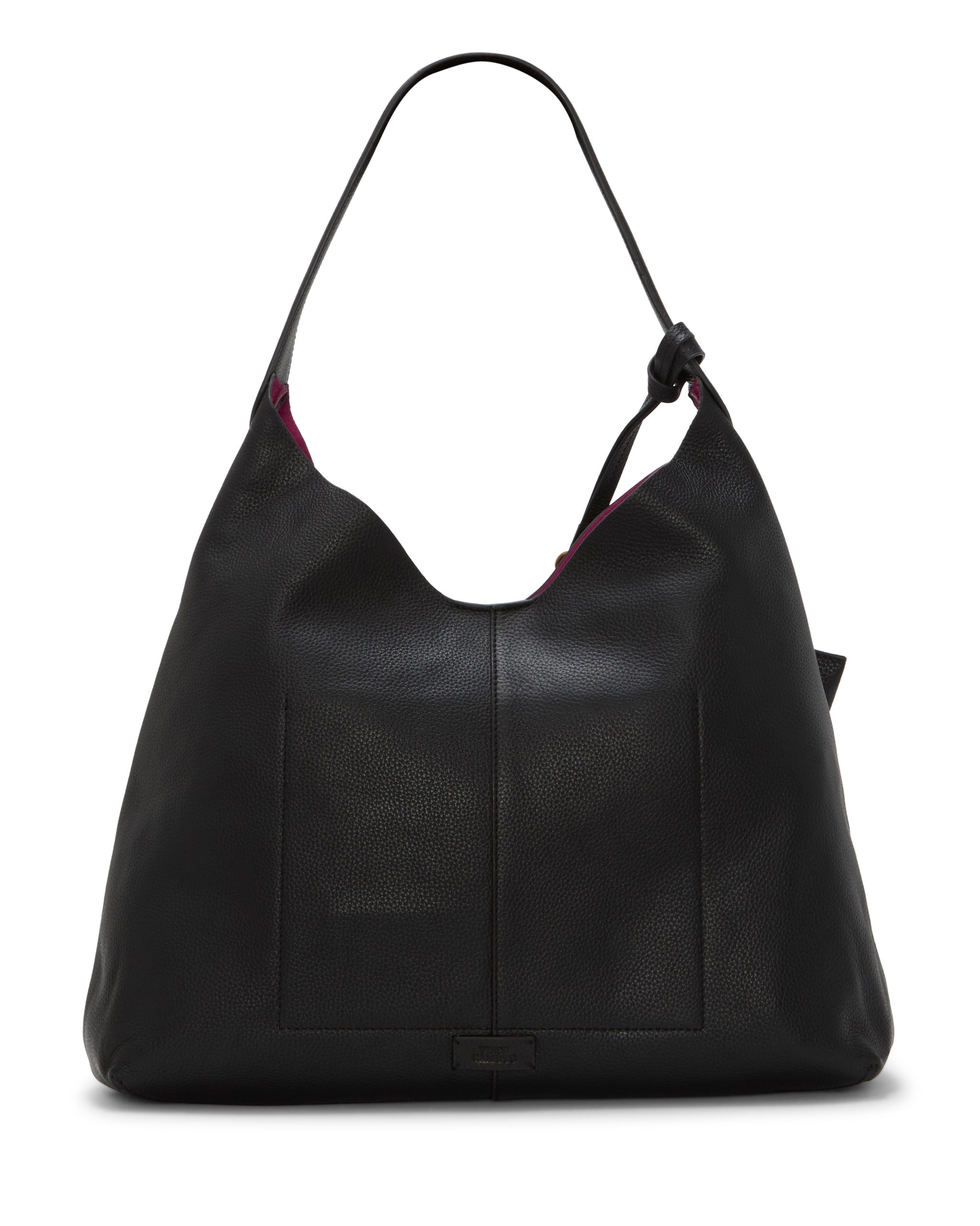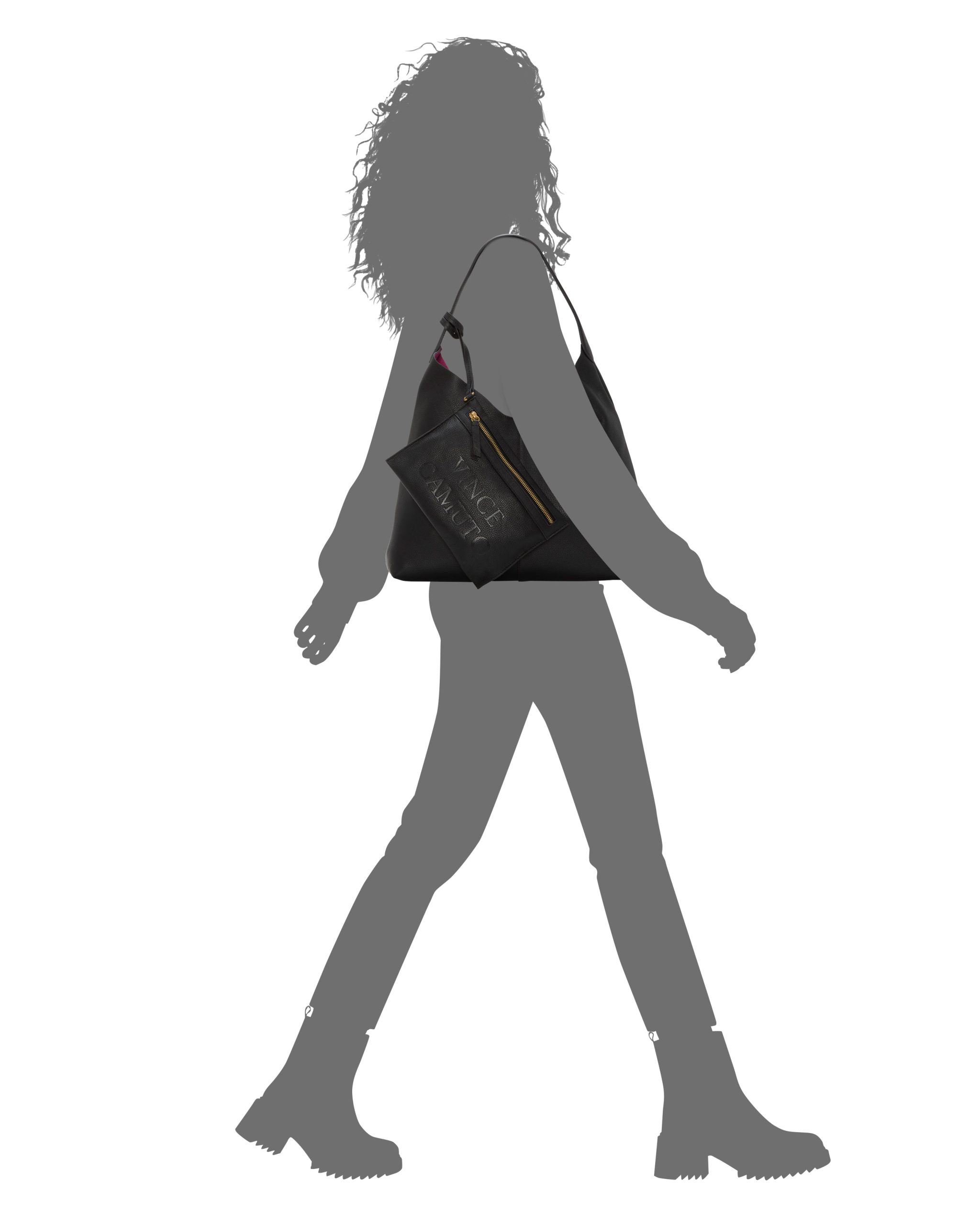 Grab your bag and get going. The definition of effortless. the Jenna hobo bag from Vince Camuto features a simple slouchy shilouette that is easy to pair. Crafted with genuine leather. and partnered with a hanging puch for additionl functionalty. this raw unlined style is complete with a cool color contrasting lining and a thick handle that you can easily throw over your shoulder.