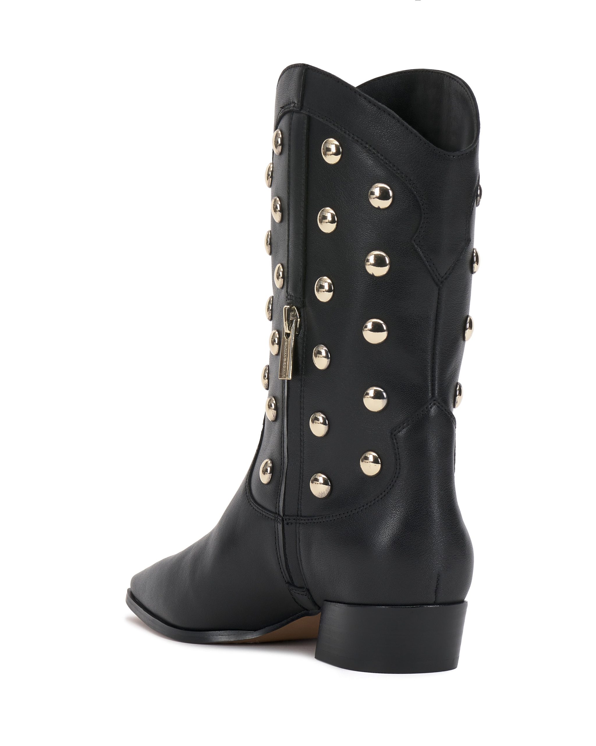 Classic western style meets modern attitude in the Prilie bootie. This cowboy boot features bold round studs on the western-inspired upper and a low block heel for a hint of height. Perfect for festivals. city strolls. or adding a bold touch to everyday looks. these boots are made for those who love to stand out.