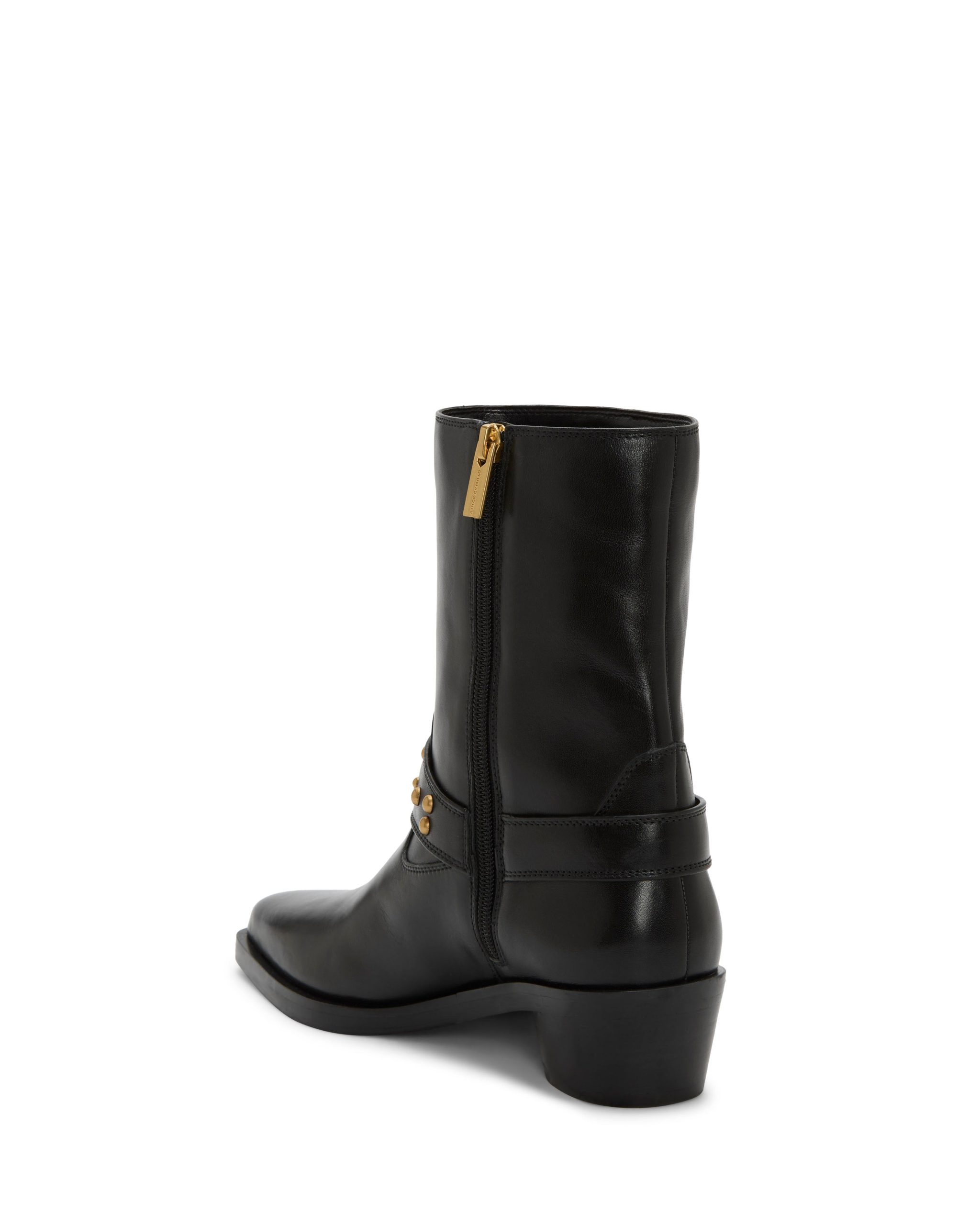 Embellished with gold-toned studs and a harness accent. the Roista moto bootie brings bold. edgy style to any outfit. The low block heel adds the perfect amount of lift while the tapered toe streamlines the design for a sophisticated update to the classic biker-inspired silhouette.