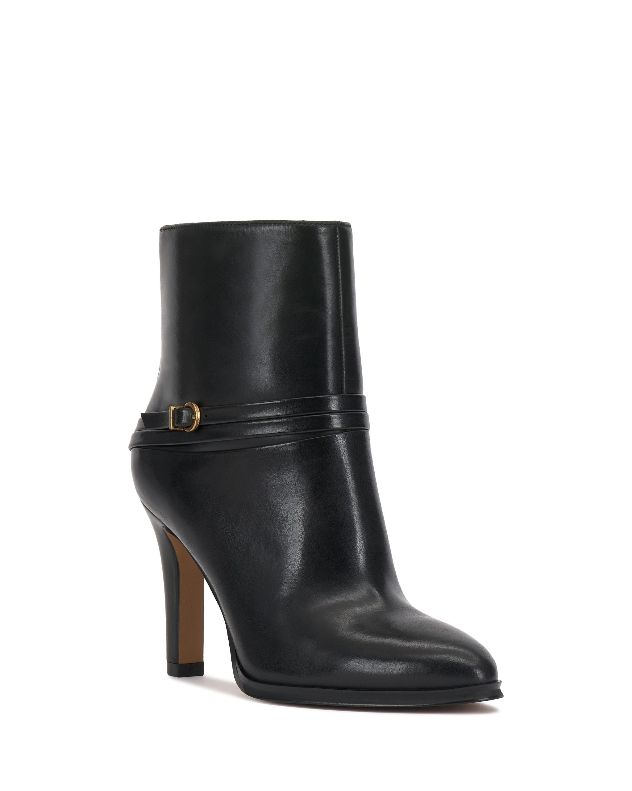 Designed for effortless elegance. the Sybilla bootie exudes refinement with its sleek silhouette and polished leather finish. The streamlined design is elevated by a delicate wraparound strap with a metal-tone buckle. adding a subtle equestrian-inspired touch. A high heel enhances the feminine ankle boot profile. making them perfect for day-to-night styling. Whether paired with tailored trousers or a flowing midi dress. these boots are a statement in timeless sophistication.