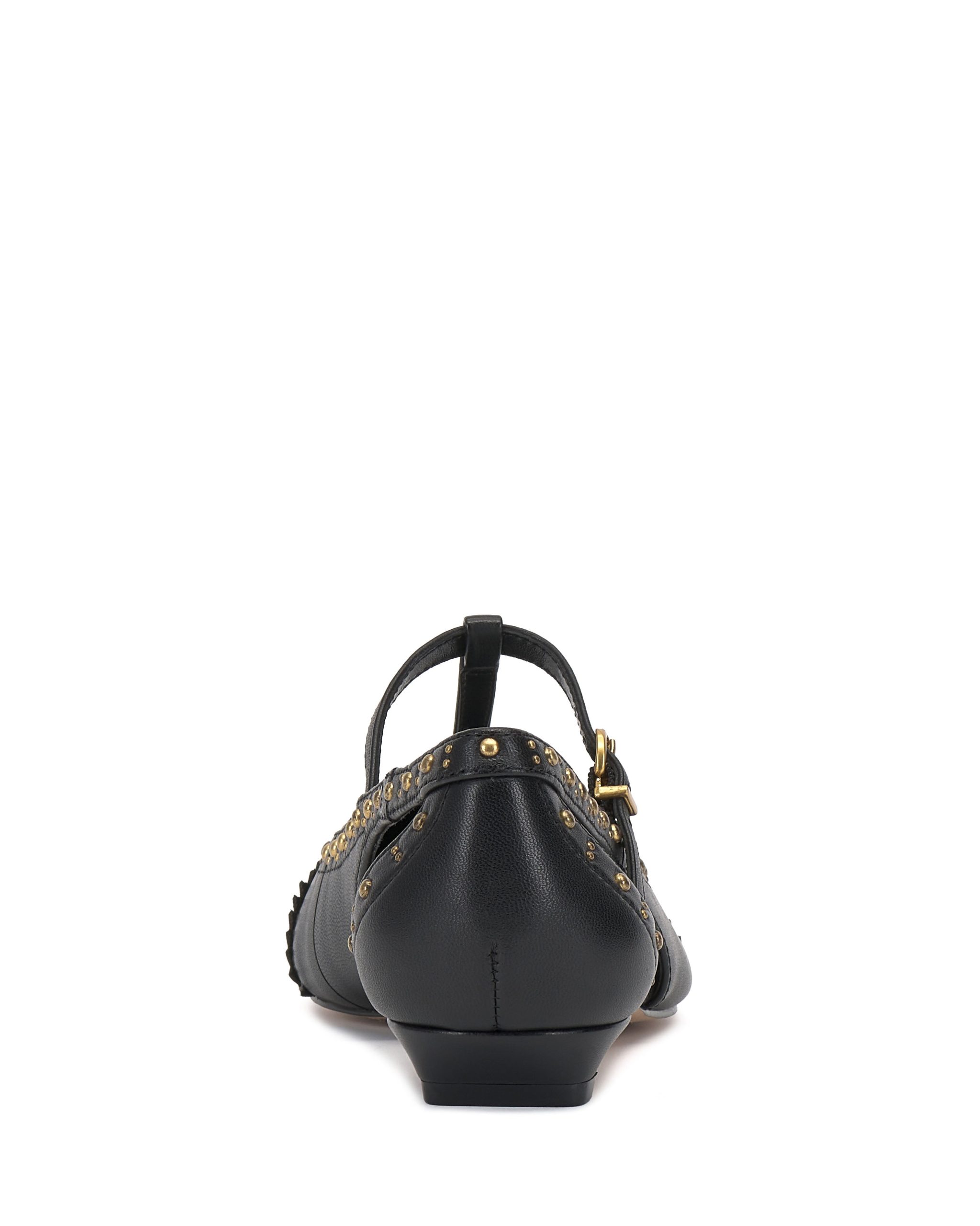 Studded accents and a kitten heel bring standout energy to the Valkie mule. A fashion-forward twist on a classic flat.